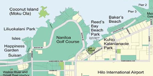 Over time probably some fifty trees were planted with many surviving until today having grown into a thick canopy, making it popular for walking. The Waiakea Peninsula is anchored by the beautiful Liliuokalani Park and Reed’s Bay Beach Park, and not far from the Hilo airport. The name comes from wai ākea which in Hawaiian means "broad waters,” and sometimes what is now called Hilo Bay was once called Waiakea Bay.