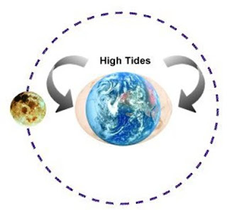 When the moon is full or new, the gravitational pull of the moon and sun are combined. The combined gravitational attraction of the two bodies produces a very strong tide that “springs forth” onto the coast, and thus is called a spring tide. (Spring tides have nothing to do with the season of the spring.) They occur when the Earth, the Sun, and the Moon are in a line. The gravitational forces of the Moon and the Sun both contribute to the tides. Spring tides occur during the full moon and the new moon.